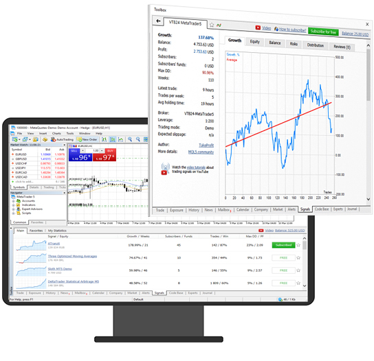 MetaTrader 5 交易信号是一种交易服务,可以自动从一个交易账户实时复制交易操作到另一个账户。
